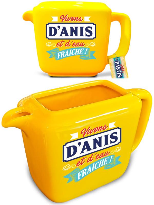 ce pichet pastis club aux couleurs de la Méditerranée marquera à coup sûr tous vos convives. Pichet jaune en dolomite. Avec l inscription "ici, on boit la vie en jaune!" ou encore "vivons d'anis et d'eau fraiche", pensée hautement philosophique écrite par Lao Tseu: